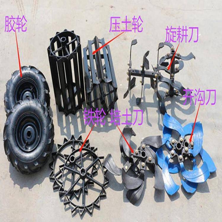 开沟机配置:开沟刀一套,培土刀二套,行走轮一副,压地轮一幅,胶轮一副。