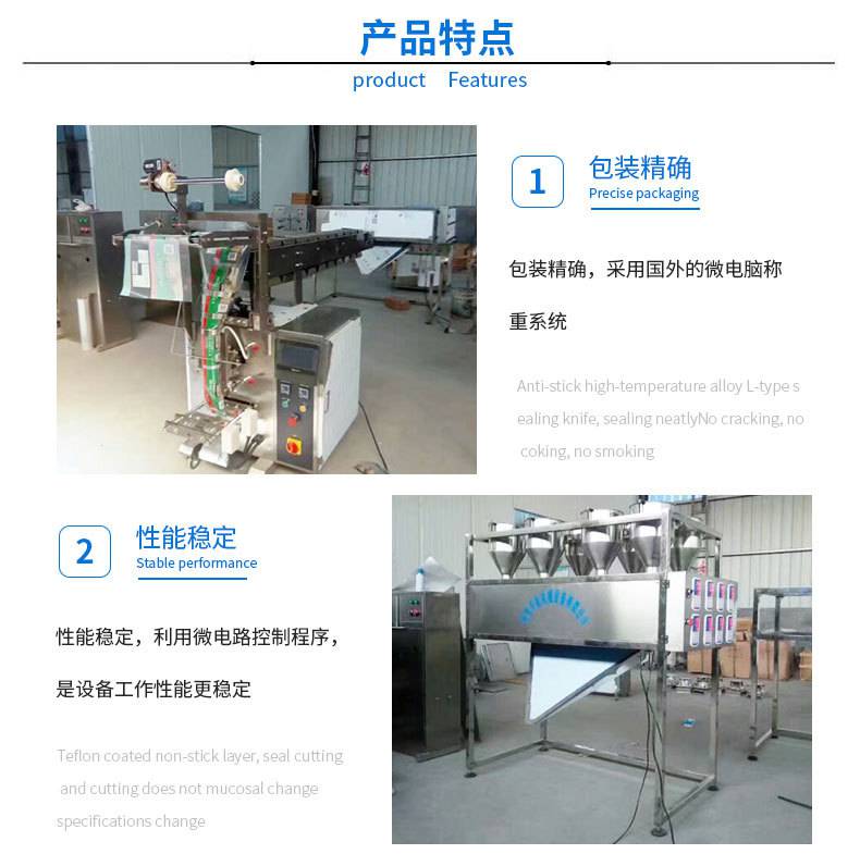 适用于休闲食品、小五金、食盐、味精、鸡精、种子、农药、肥料、大米、兽药、饲料、预混料、添加剂、洗衣粉、等粒状、粉状物料的定量包装。
