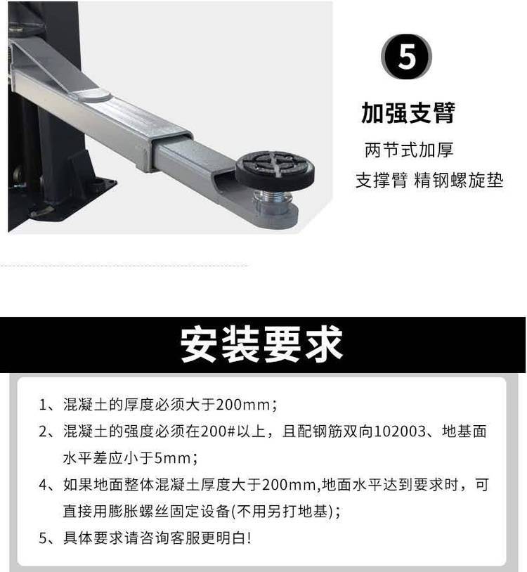 四、支车时,车辆不可支的过高,支起后四个托架要锁紧。