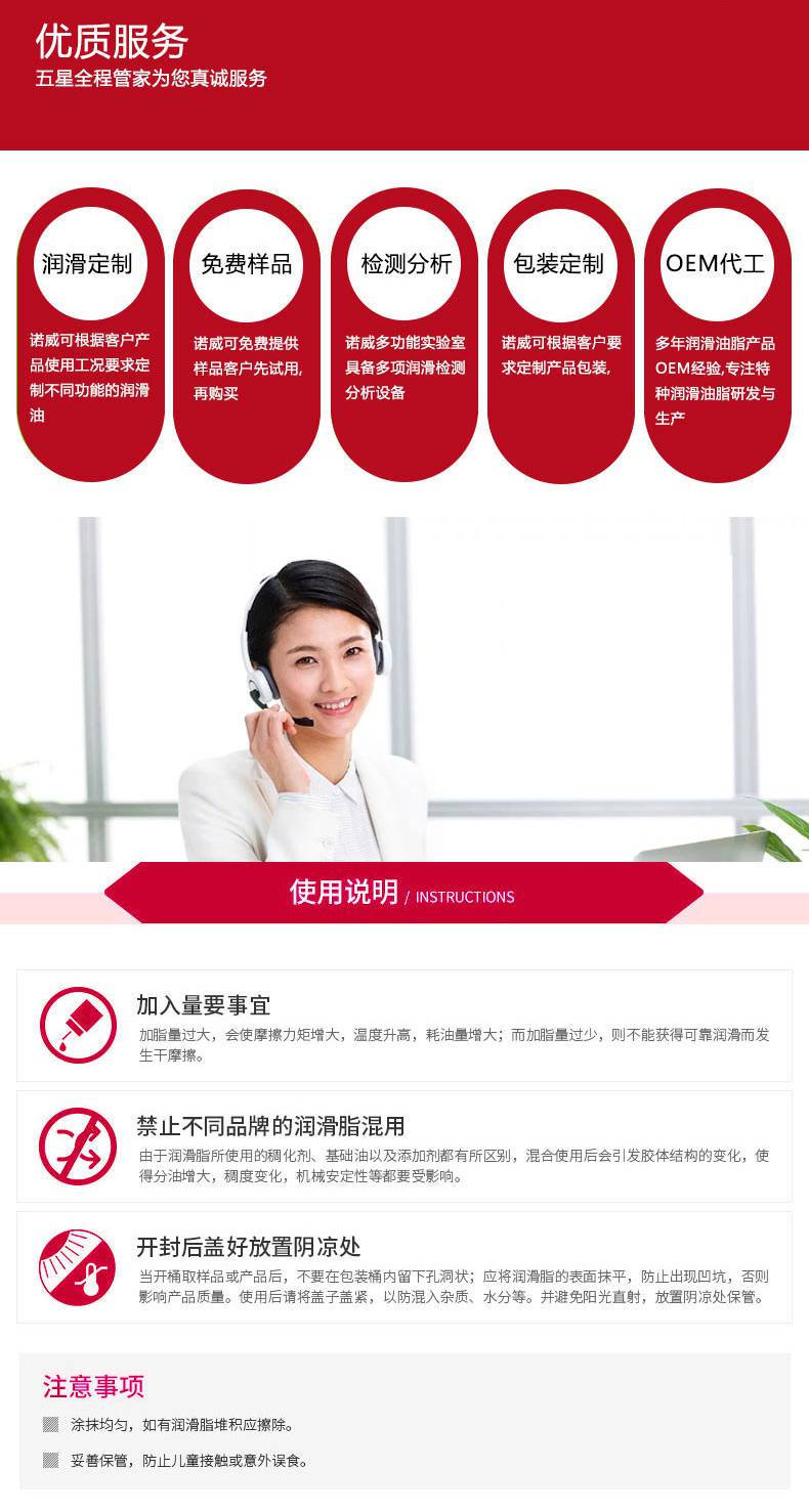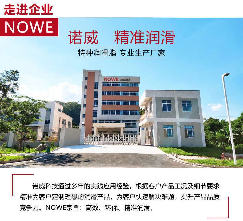 东莞市诺威润滑科技有限公司是一家为制造业量身订制,研发各种高品质特种润滑油脂的高新技术企业。公司占地面积3900多平方米,引进各种进口生产设备、检测仪器和***制造工艺,采用优质环保的润滑材料,拥有技术精湛的工程技术团队为客户提供专业的润滑服务方案。 主要经营机器人减速机油脂、食品级润滑脂、硅脂、干性皮膜油、阻尼油脂、高低温润滑脂、金属塑胶齿轮消音脂等,服务于机器人、家电、医疗、汽车、玩具、、造纸等多种行业。 公司以创新,高效,环保的宗旨理念,精准润滑!以高精湛的工艺技术,切实提升客户的产品质量降低生产成本。致力同客户建立长期合作伙伴关系,互利发展,共创辉煌!