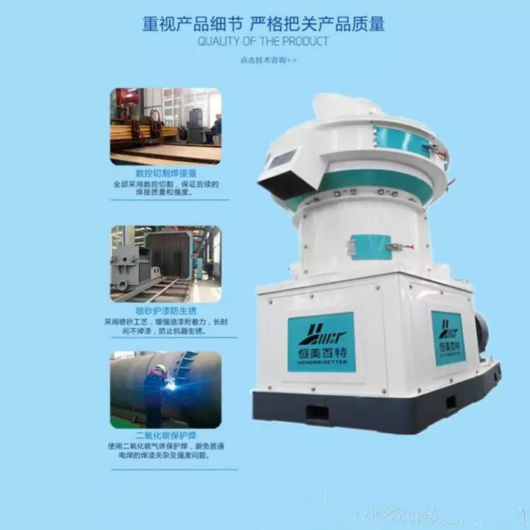 恒美百特生物质颗粒制粒机,高效能、低能耗、连续24小时不停机生产,整机主要部件选用配件,在传统制粒机的基础上,从材质、热处理等工艺上加强主要工作部位的工作强度。,主要提高了环模防开裂、高产量、使用时间长(产能在600吨纯木屑颗粒、1000吨秸秆颗粒以上)等重大难题