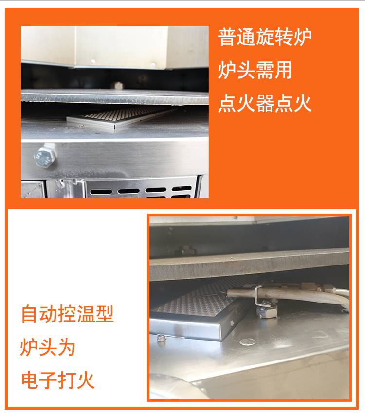三、燃气代替炭火,上下皆有无明火炉头,红外线烧烤干净卫生。设备外观设计更美观。