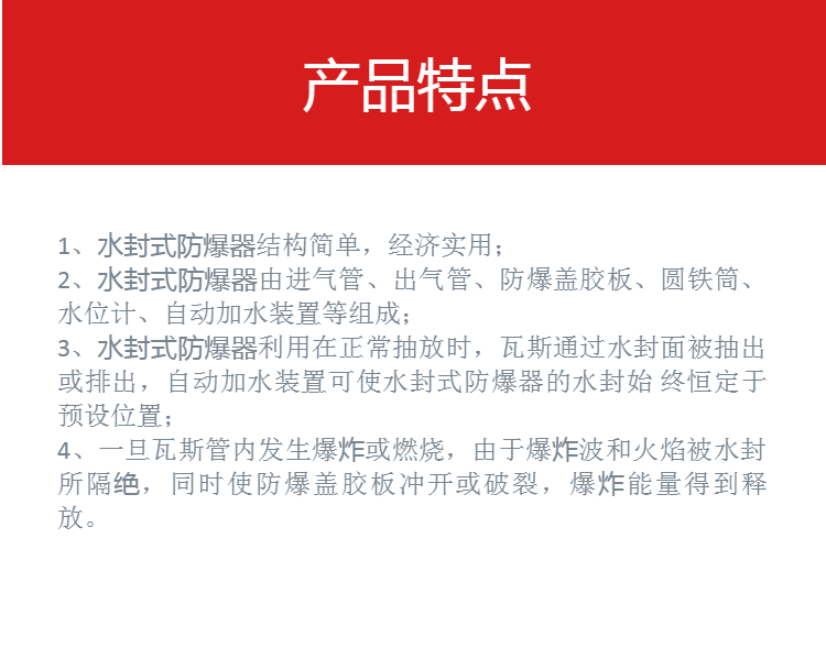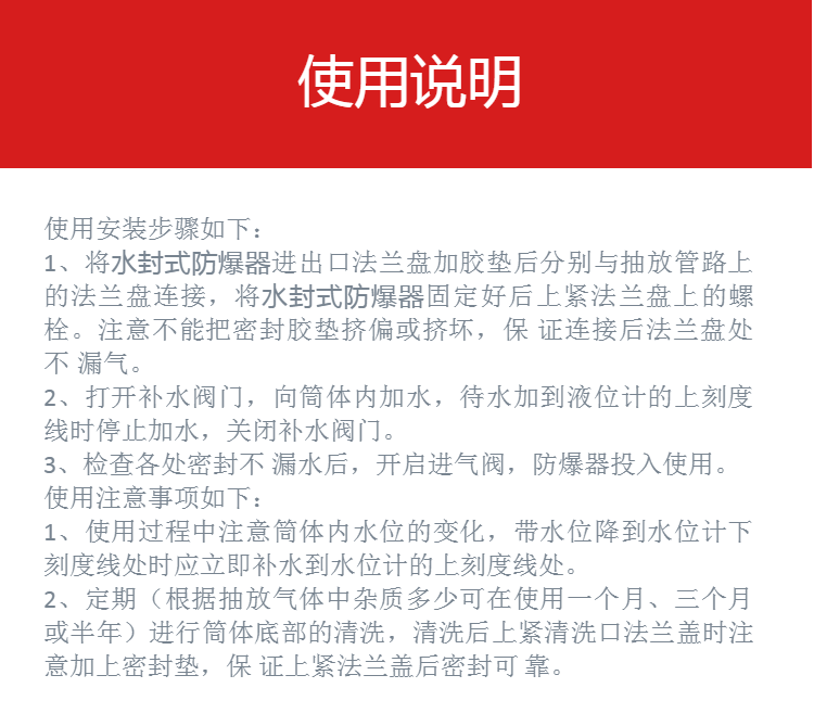 | 加工定制:是 | 名称:水封式防爆器 | 颜色:红 |