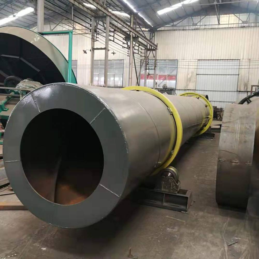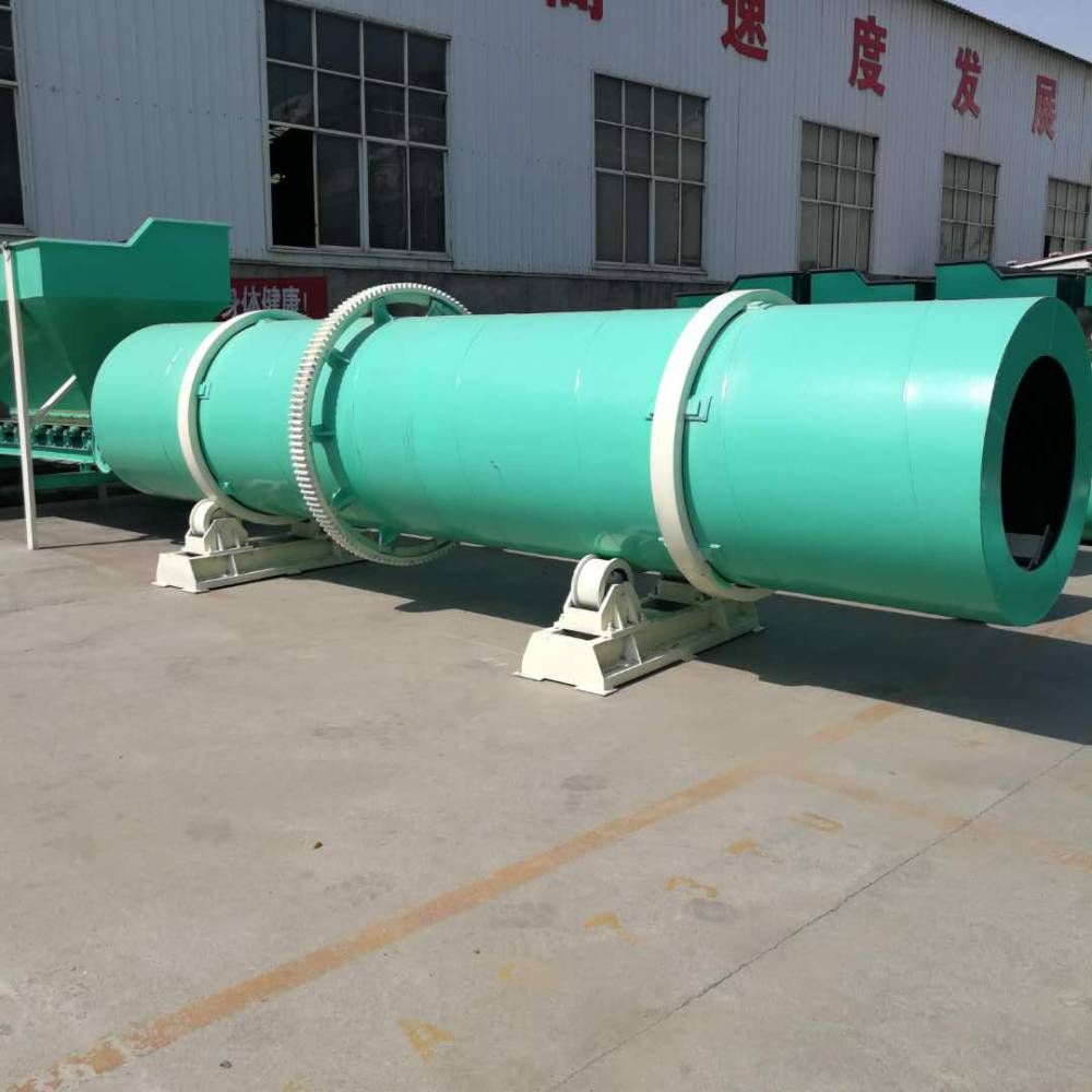 回转式烘干机--别名滚筒式烘干机,生物有机肥烘干机,因为有机肥烘干时温度不能超过80°,所以咱们的烘干机采用热风烘干模式。
