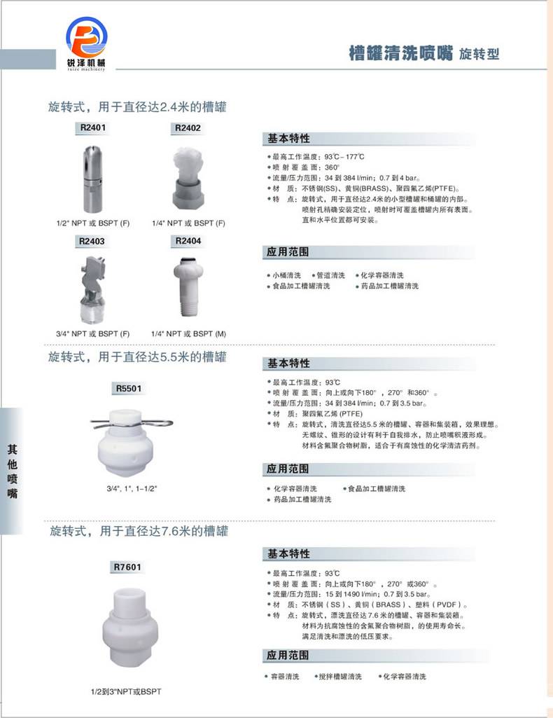 分类:固定式槽罐清洗喷头、紧凑型槽罐清洗喷嘴、自动旋转槽罐清洗喷头