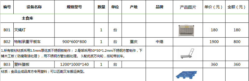 重庆***整套厨房设备,包括卸货区、主食库、副食库、冻库、蔬菜加工区、肉类加工区、烹饪、打荷、蒸煮、烘烤区、面点生制间、预进、果蔬间、派餐区、明档/特色小吃区、洗碗、垃圾间、炒灶区抽排系统、蒸煮区、面点抽排系统、洗碗间抽排系统、明档抽排系统的各种设备。
