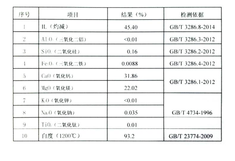 | 含钙量&ge,:92% | 含镁量&le,:0.05% | 含铁量&le,:0.01% |