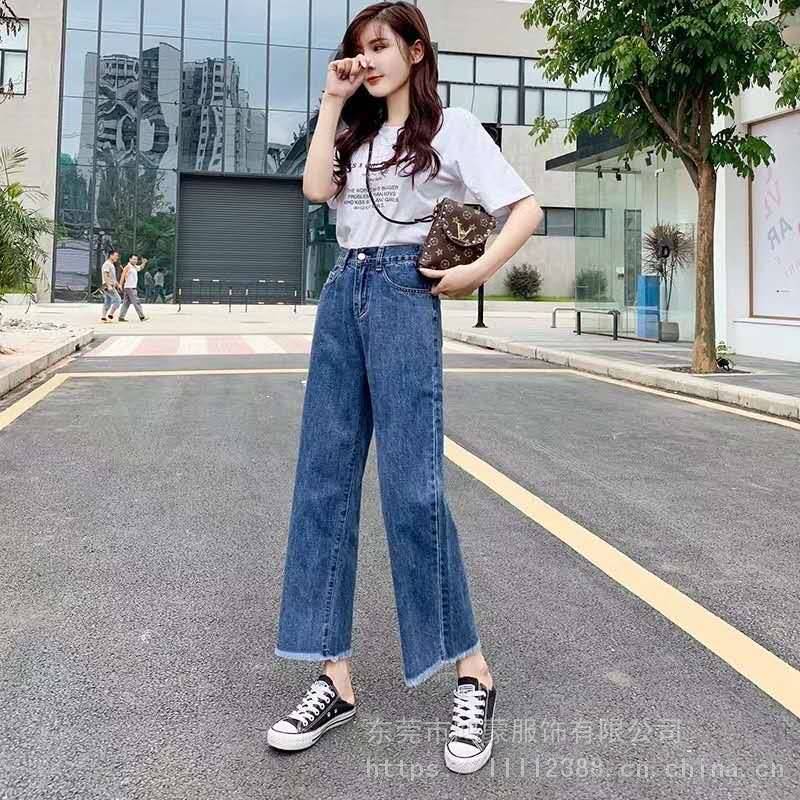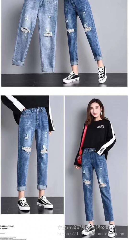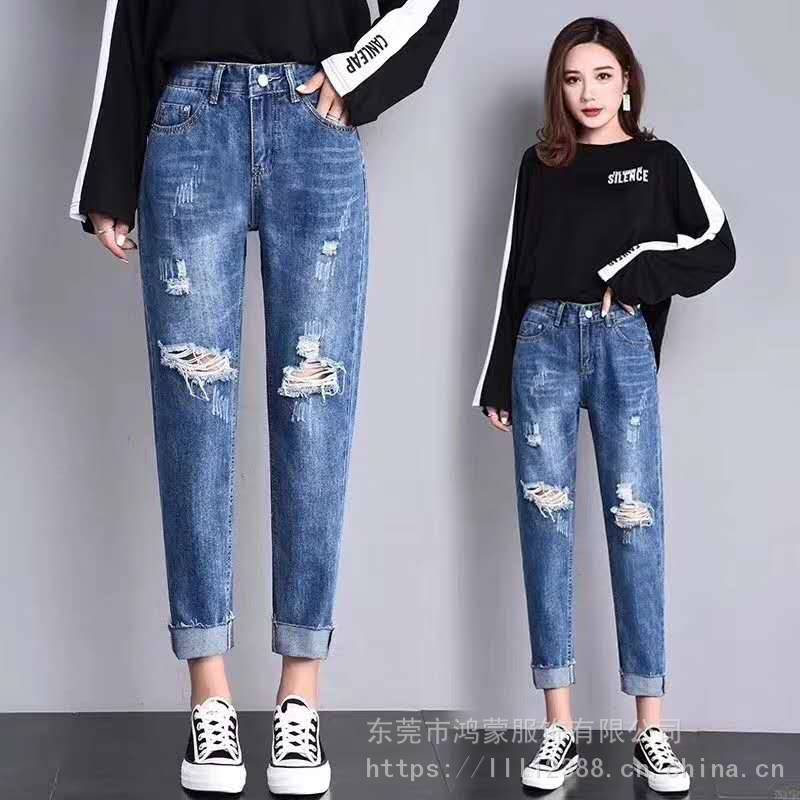 江西南昌尾货批发女士牛仔裤清货库存服装便宜九分裤女士破洞牛仔裤