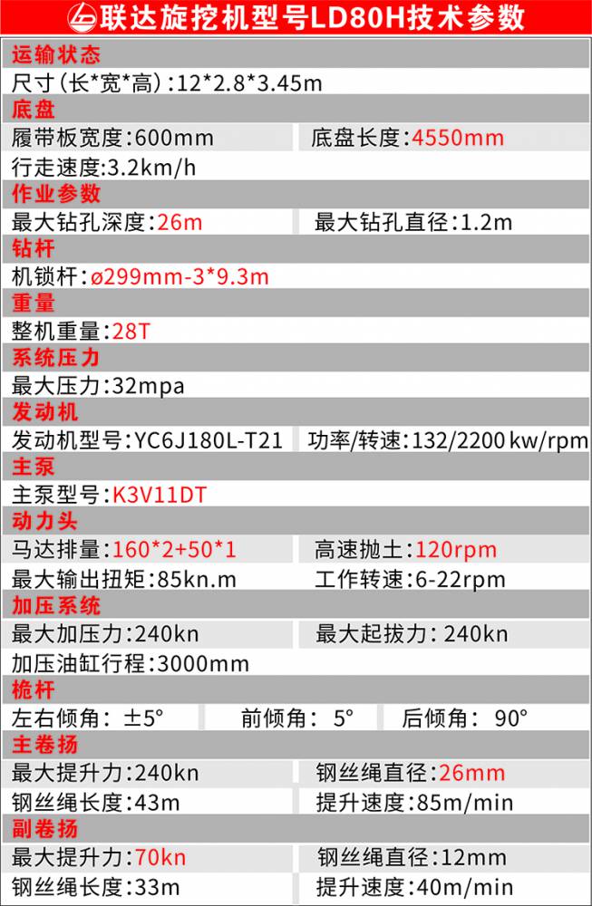 | 型号:LD80H | 外形尺寸:1200*280*345cm | 钻孔直径:1200mm |