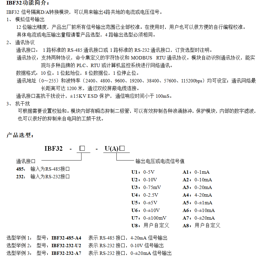 | 品牌:贝福 | 型号:IBF | 用途:模拟量输出 |