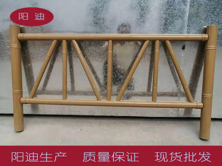 仿竹栏杆可塑性大、运用寿数长,艺术感强、绿色环保、不腐、不燃、仿竹栏杆外观精巧,从表面现象看,它就是竹的造型。仿竹栏杆从外观直到色泽,挨近天然,坚持竹子的原色。