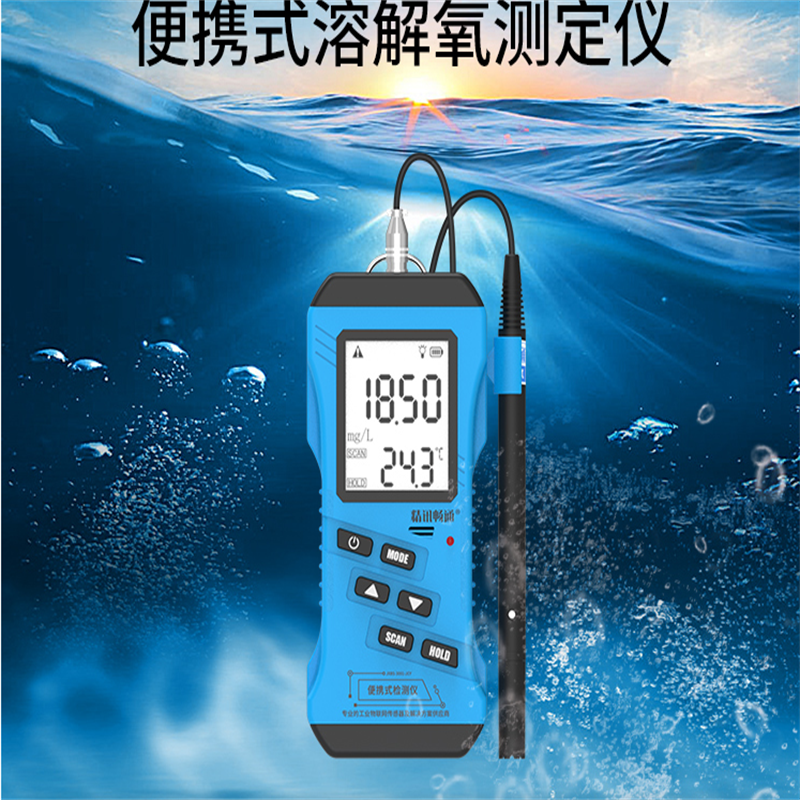 溶解氧测定仪是测定水中溶解氧的装置,工作原理是氧透过隔膜被工作电极还原,产生与氧浓度成正比的扩散电流,通过测量此电流,得到水中溶解氧的浓度。