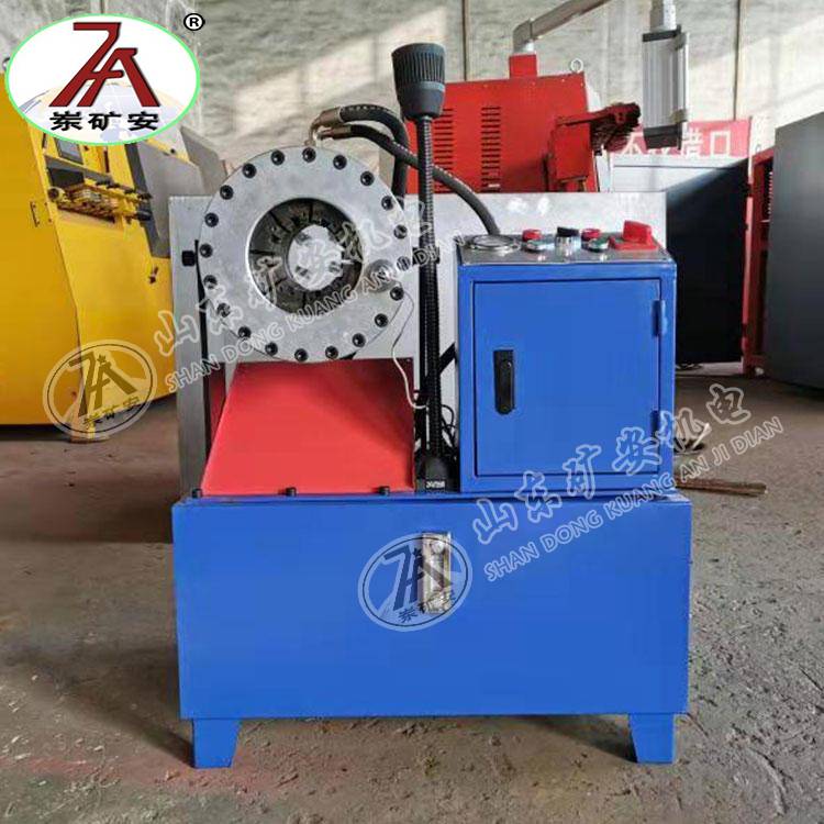 油泵在电机驱动下,输出液压油,推动液压缸里的活塞做左右往复运动,从而使压块推动模座,使模座能产生径向收缩,终实现模块对胶管的扣压。当收缩量达到在控制面板上所设定的值时,扣压自动停止,换向阀自动换向,液压油进入油缸下腔,带动上方板向上运动,使模具孔张大,就可以取下扣压好的胶管总成。