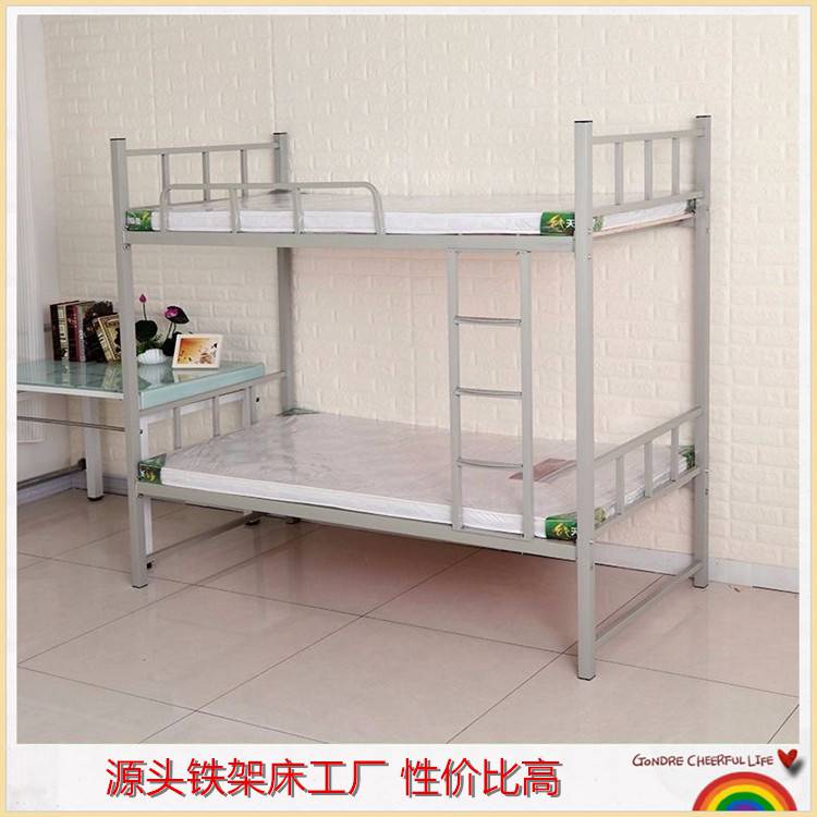 学生床上下铺的床康胜批发,学校上下铺铁床价格好,康胜家具9年生产学校铁床,拥有完整的制造生产链,做工更精细,焊缝平整,光滑,抗疲软性强,成品无毛刺刮手