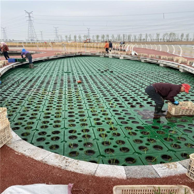 1.建立生态岛:漂浮湿地独特的透气构造孔便于各种植物生根。