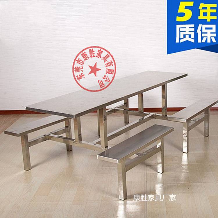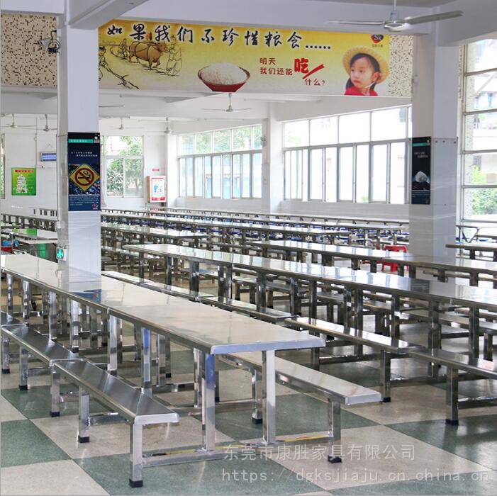 304不锈钢8人食堂餐桌椅-深圳市学校食堂不锈钢连体餐桌椅,康胜食堂餐桌椅厂家拥有完整的制造生产链,把利真正让给客户,康胜8人食堂餐桌椅表面光滑细腻,四周包边,桌角凳角弧形设计,防止碰撞受伤,更显人性化设计!