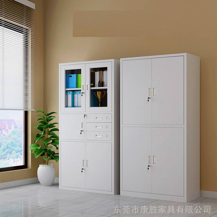 康胜家具是一家制造铁皮文件柜厂家,公司拥有一批素质高、具有9年制造办公铁皮好柜经验的员工,拥有多台大型数控设备和喷粉房,康胜广州铁皮文件柜厂家定做办公家具铁皮文件柜,办公家具简约时尚款 ,承重性能好,可放大量书籍或文件资料而不易变形,康胜铁皮文件柜厂家以货真价实的原材料为基础,以设计美观和做工精湛为本,层层质检,旨在为客户创造一个***实用性强的办公家具!