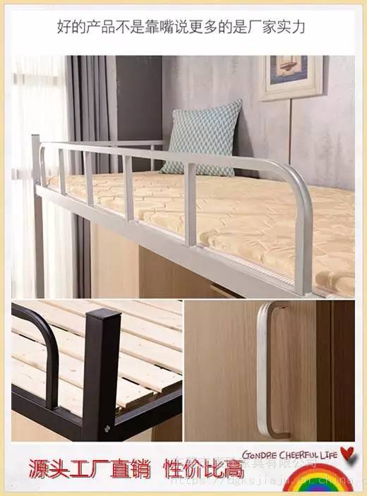 集体宿舍使用的大部分都是上下铺双层床,不只是学校,单位或者工厂也是一样,因为它节约空间,成本相对来说也低,从使用的寿命上来看,无疑也是最长久的。造型也很多,中式、欧式让你应接不暇,整体造型***艺术性,拆卸也很方便,3分钟安装,拆装1分钟拆装!