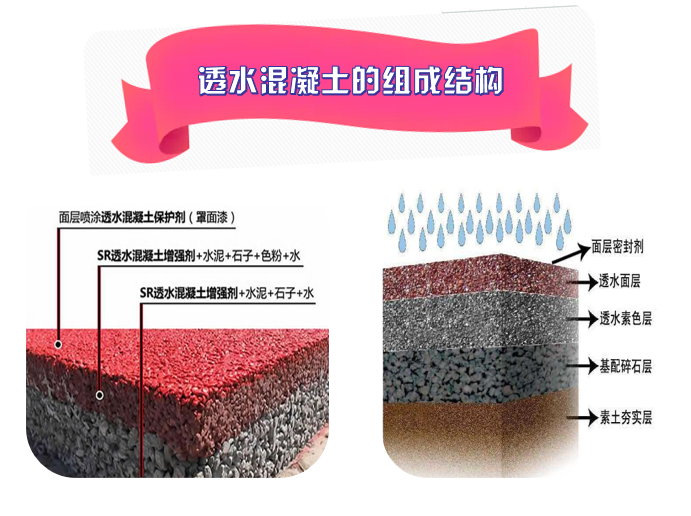 透水混凝土又称多孔混凝土,无砂混凝土,排水混凝土,透水地坪,是由骨料、水泥和胶结料经加水拌制而成的一种多孔轻质混凝土,它不含细骨科,由粗骨科表面包覆一薄层水泥浆相互粘结而形成孔穴均匀分布的蜂窝状结构,故具有透气、透水和重量轻的特点。系针对原城市道路的路面缺陷,开发制成的一种能让雨水流入地下有效补充地下水,并能***消除地面上的油类化合物等对环境污染的危害。同时是保护自然、维护生态平衡、吸音降噪、降低热岛效应的优良铺装材料。