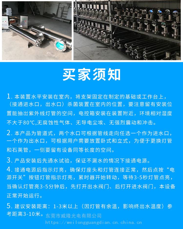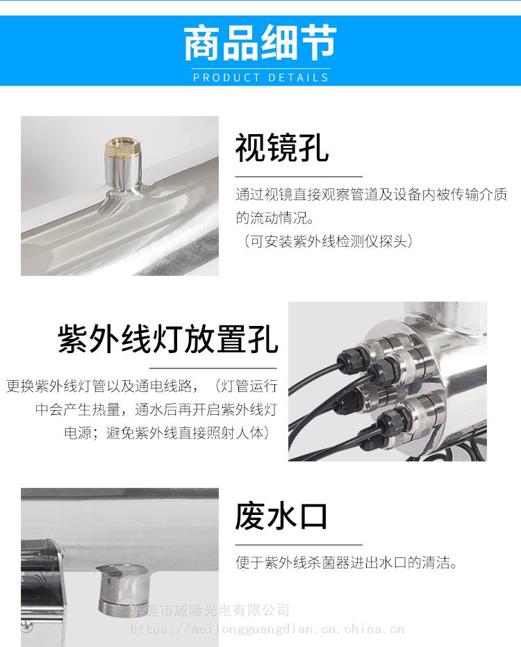 1、紫外线杀菌器全不锈钢外壳防腐蚀,使用寿命长;