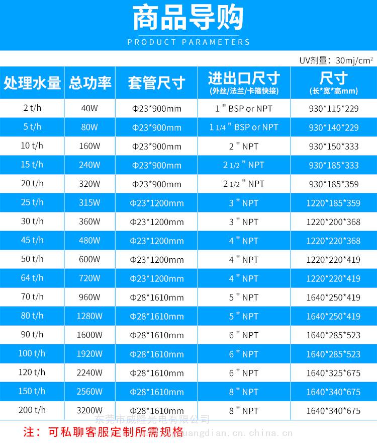 东莞市威隆光电有限公司主要运营销售水处理大、中、小型管道过流式杀菌消毒器、废水明渠排架式紫外线杀菌消毒设备和废气光解紫外线杀菌设备,我们核心技术人员从业紫外线领域10多年,积累了丰富的行业经验和专注技术。专业为用户按施工现场量身订制成套紫外线杀菌消毒系统,我们一直秉持集研发、安装配套一条龙服务,承包整套系统的安装调试及验收,无止境为用户提供专注技术支持。 我公司废水消毒系统严格执行国家一级A类的设计标准,配套进口高duan品牌UV灯管,如:美国KANADON和美国LIGHT SOURCES等优zhi紫外线UV灯管和高性neng电子镇流器,采用膜块化设计,配置德国西门子PLC控制系统及设计自动清洗功能,保障系统高效运行,有效节省长期运行过程中的成本维护。另外我公司承接整套紫外线系统的项改造,由市政B标提升为市政一类A标大肠杆菌群≤103;目前我们工程业务范围广fan涉及世界各地,在国内拥有许多工程案例,先后与众多中大型事业单位深入合作,产品和服务取得客户高度好评。 我们另外代理销售美国KANADON紫外线灯管、美国LIGHT SOURCES紫外线灯管、美国WODER-LIGHT紫外线灯管、美国Aquafine紫外线灯管美国陶氏离子交换树脂、反渗透RO膜、膜阻垢剂等等,一级代理,价格优势大,品质***。 感谢每一位客户朋友对我们威隆人的信任与支持,使得我们不断奋进,我们将以诚心、诚信、真诚和热情的态度为每一位客户服务;坚持“实事求是、以人为本、追求zhuo越、贡献客户”的精神。用高xiao率的服务态度及良好的商业道德鞭策自己;我们威隆人努力为国家共同实现青山绿水奉献我们每一份微薄的力量,让我们下一代人能享受到更干净的水,呼吸到更新鲜的空气。