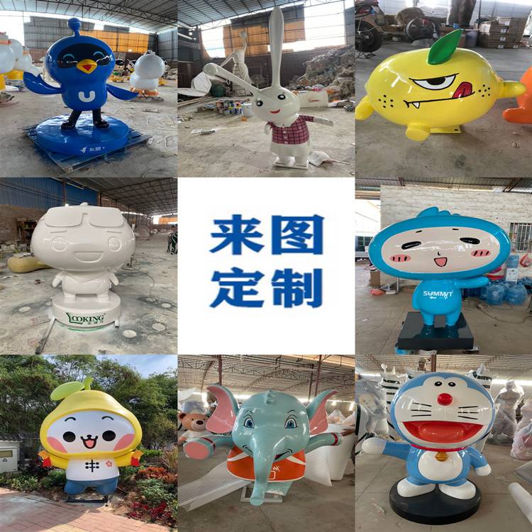 卡通人物雕塑属于玻璃钢雕塑的一种,而玻璃钢雕塑的创作随意性强,自由性宽,构想空间大,取决于人们平时的生活、工作、休闲、劳动、娱乐等各种的生活动态的表现描写塑造。充分发挥了人们创造力、想象力。玻璃钢雕塑无大小限制,大街小巷、校园广场、城市乡村可以无处不在。可以净化人们的心灵,陶冶人们的情操,对美好事物向往的一种追求。