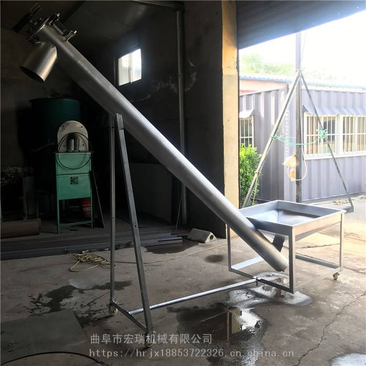 螺旋提升机产品概述 该机适用于食品、医药、化工、塑料等行业的粉粒状物料的输送。可以与我司包装机配套实现料位跟踪自动供料,也可单独在其它场合使用。除电机、轴承、机架外其余为不锈钢制成。可随意移动,在水平、倾斜、垂直等位置均能连续输送,它具有良好的密封性,无粉尘泄漏。可直接与其配套的设备连接固定,不需要地基基础,充分利用厂房空间。