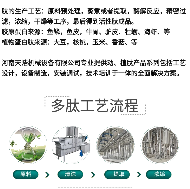本页信息为河南天浩机械设备有限公司为您提供的"燕窝胶原蛋白肽提取设备 小分子蛋白粉提取加工设备介绍"产品信息,如您想了解更多关于"燕窝胶原蛋白肽提取设备 小分子蛋白粉提取加工设备介绍"价格、型号、厂家请联系厂家,或给厂家留言。 进入店铺