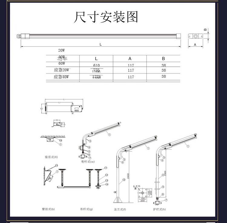安装方式 吸项式(x)、吊杆式(g)、璧式(b)、法兰式(h)、穹杆式(w)