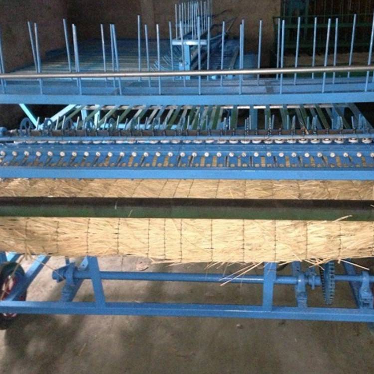 草帘编织机采用杠杆式传动,解决了传统式草帘机的缠草弊端,该机样式新颖,性能可靠,操作简单,使用安全,具有不挑扣、不断线、自动索头、针距可调、速度可变、自动切边等功能,可一机多用,型号齐全,稳定性好。多年来,经过不断的技术改进和更新,机器已非常成熟。整机的稳定性,电机的通风效果更好,可做各种规格的苇帘、蒿帘、柳帘、蒲帘、苇片帘、人造草坪等。