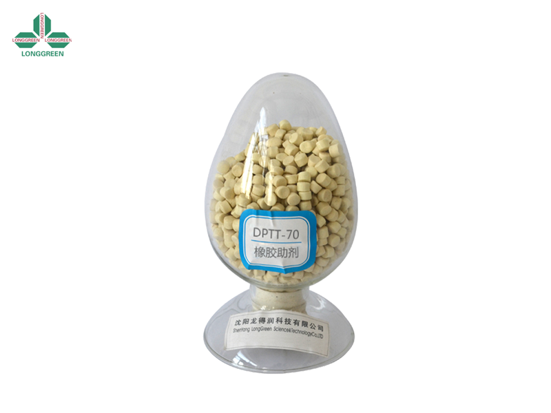 DPTT-70橡胶促进剂、交联剂为天然胶及其它合成橡胶的超速促进剂,无硫或低硫硫化时的交联剂。在天然胶和合成橡胶中的硫化速度快,焦烧安全性高,与硫醇类和次磺酰胺类促进剂并用时作活化剂和副促进剂。少量DPTT-70与秋兰姆促进剂并用可提高硫化胶的耐老化性能。