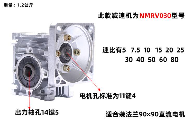 NMRV减速机的重量比较轻,外壳采用铝合金铸造,具有重量轻,强度优越,外观精美,散热性能高,使用寿命长,动作无噪音等特长,与电机连接方便简单。安装方便.NMRV减速机一种较为实用的传动设备,并且在外观设计以及其积体都比其它类型的减速机更符合大众的需求。采用铝合金铸造的RV减速机虽然只在2007年才兴起的,但其使用领域和受大众欢迎的程度甚至比其它类型的减速机更为优越,它是一款实用性都比较高的减速机,更是国内外***技术的融合。NMRV减速机与普通电机、无级变速机、法兰式电磁离合刹车组连结极为方便,不需要联轴器来连结。可适合全方位安装,并且输出扭矩也比较大,工作相当地的平稳等。