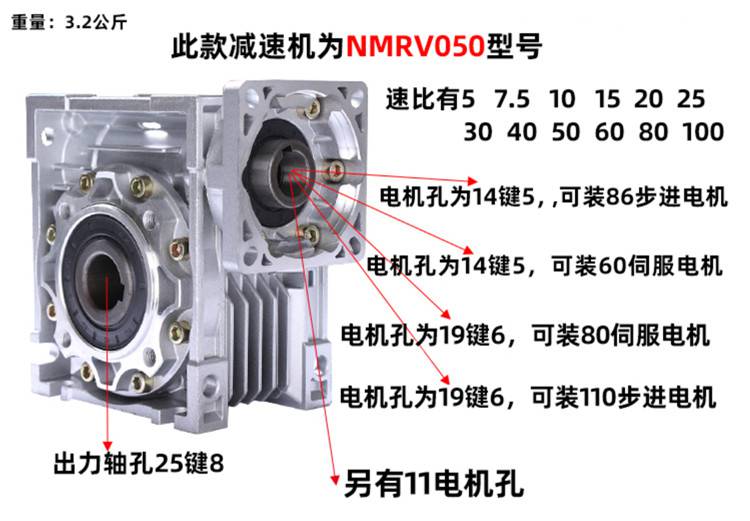 型号有:NMRV025、NMRV030、NMRV040、NMRV050、NMRV063、NMRV075、NMRV090、NMRV110、NMRV130、NMRV150