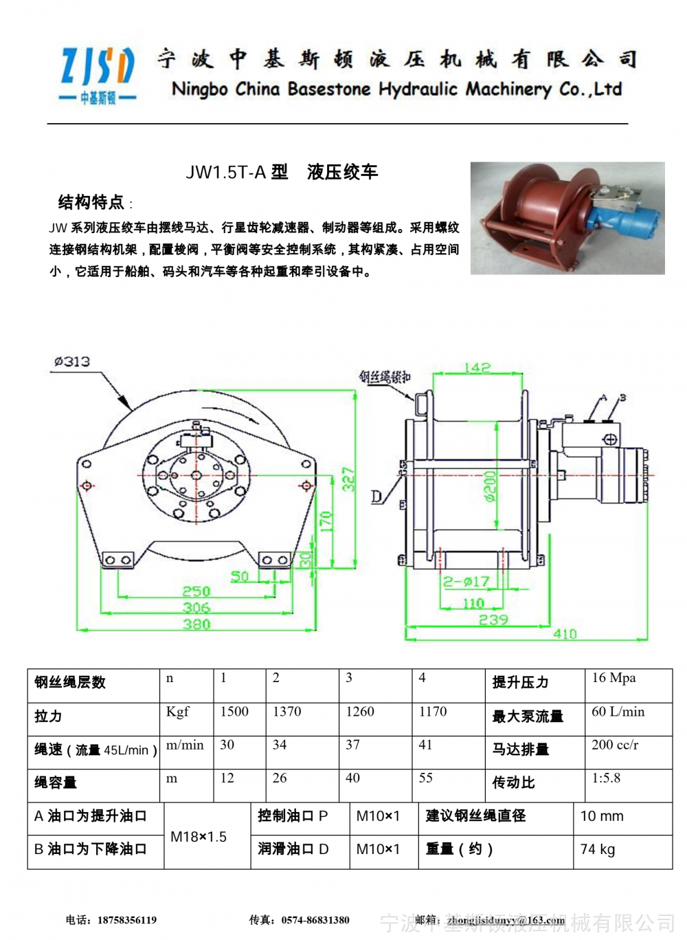 | 容绳量:43米 | 压力:16Mpa | 速比:1:5.8 |