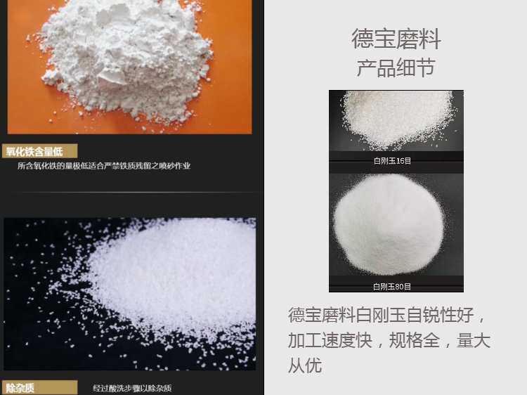 | 品牌:德宝磨料 | 产品名称:白刚玉 | 密度:1.53~1.99g/cm3g/cm3 |