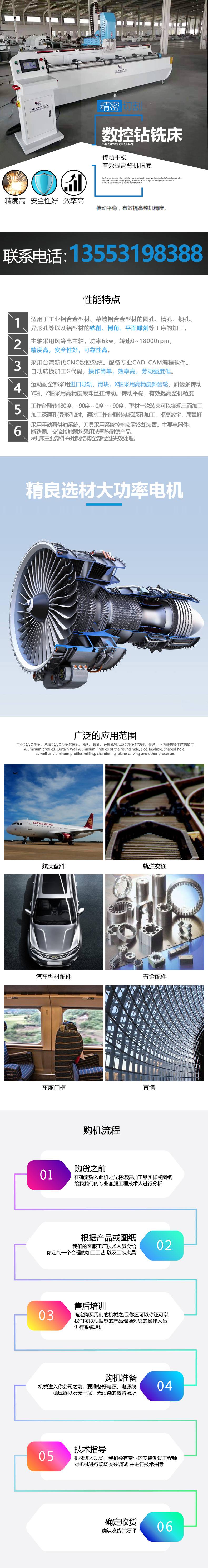 适用于工业铝合金型材、门窗、幕墙铝合金型材的圆孔、槽孔、锁孔、异形孔等以及铝型材的铣削、倒角、平面雕刻等工序的加工。