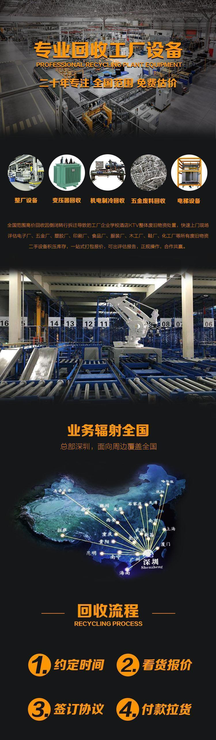 长期收购各类大.中.小型机械设备,废旧物资,更新设备,淘汰设备,库存,整厂回收!机械设备回收,整厂设备回收,多年来,在同行中获得良好的信誉,业务遍及广东及全国;本公司有庞大的回收队伍,现场估价!并拥有安装、拆卸、高空作业技术的施工队伍。