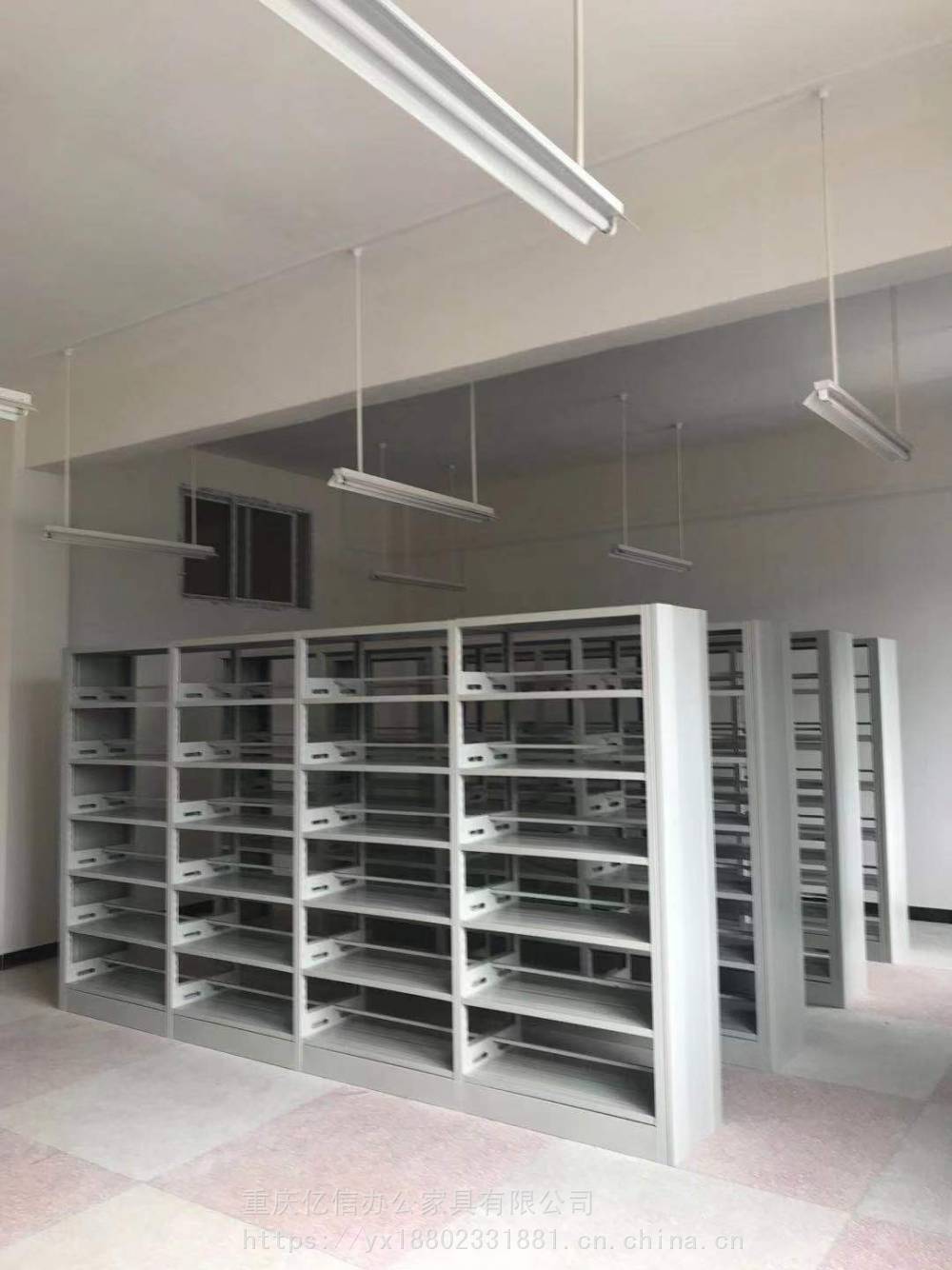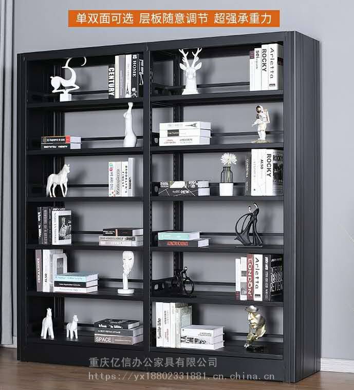 重庆亿信钢制图书架文化馆书架 图书存放多层铁书架供应
