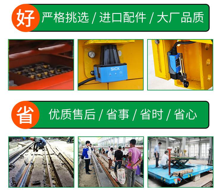 1、对比电缆线式轨道车,蓄电池供电灵活,适用于转弯、交叉运输、长距离转运、摆渡等场合,可配套电动转盘或者自身完成十字交叉的搬运。