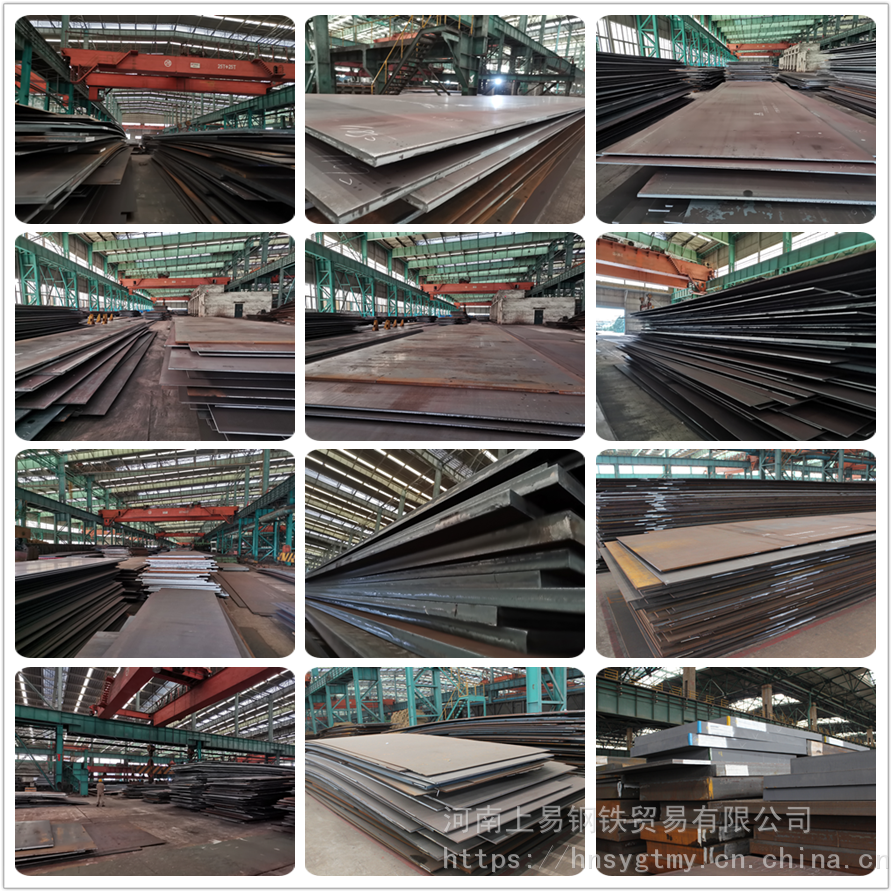 河南上易钢铁贸易有限公司常年库存有各种规格材质钢板20000余吨供客户选择,还可根据客户需求定轧各种特殊规格板材,公司下属钢板加工厂可根据用户要求切割半成品及异型件,同时可代办公路、铁路运输。欢迎各界朋友光临惠顾!我公司为舞钢,协议户,年销售钢板6万余吨,销售额3.3亿,主要经营舞钢产中厚及特宽特厚钢板,堆焊复合钢板,经销舞钢,安钢、湘钢、首钢、武钢,宝钢,南钢,兴澄等国内各大钢铁厂的各种规格材质的各种钢板,还可根据客户需求定轧各种特殊规格板材,公司下属钢板加工厂可根据用户要求切割半成品及异型件,同时可代办公路、铁路运输。欢迎各界朋友光临惠顾!专业经销堆焊复合耐磨板,(3+3,4+4,5+5,6+4,6+5,6+6,8+4,8+5,8+6,8+7,8+8,10+4,10+6,10+8,12+4,12+5,12+6,12+7,12+8)。国产nm360耐磨板,nm400耐磨板,nm450耐磨板,nm500耐磨板,12Cr1MoV合金板,15CrMo合金板,Q345B锰板,Q345B厚板,Q345B切割,Q345BZ15,Q690D,Q690E高强板,15CrMoR钢板,16MnDR容器板,09MnNiDR容器板以及各类材质钢板切割件。