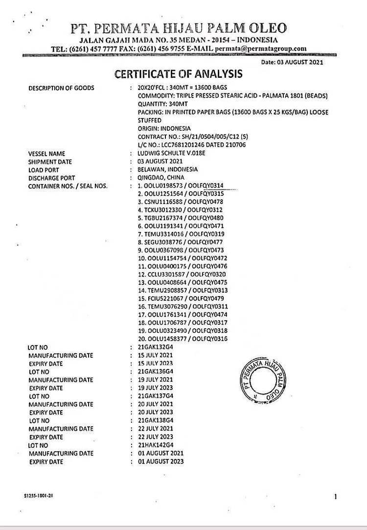 青岛盛赢创 新材料有限公司是印尼绿宝硬脂酸代理商,并代理马来西亚大自然1808硬脂酸,印尼3A氢化油(硬化油),东马棕榈硬脂酸、印尼杜库达硬脂酸、氢化油、硬化油。