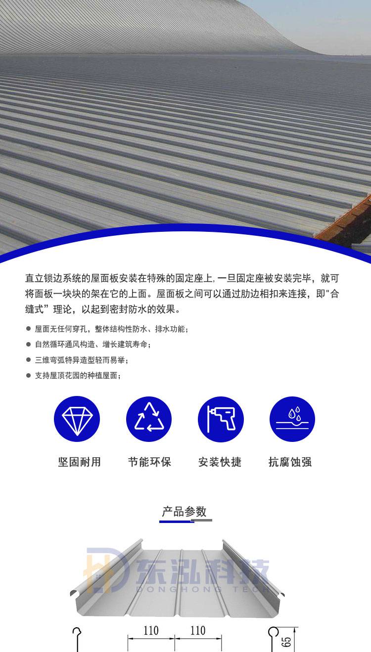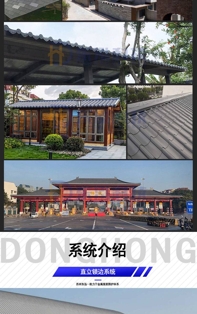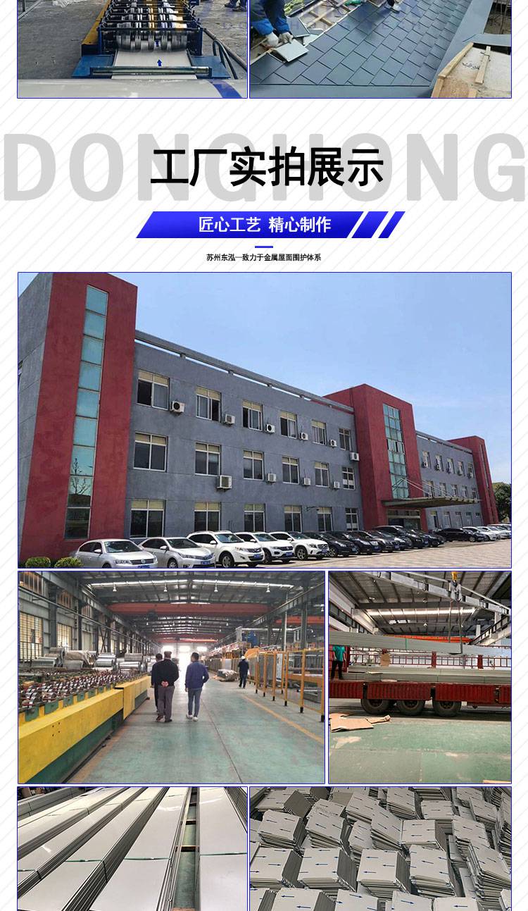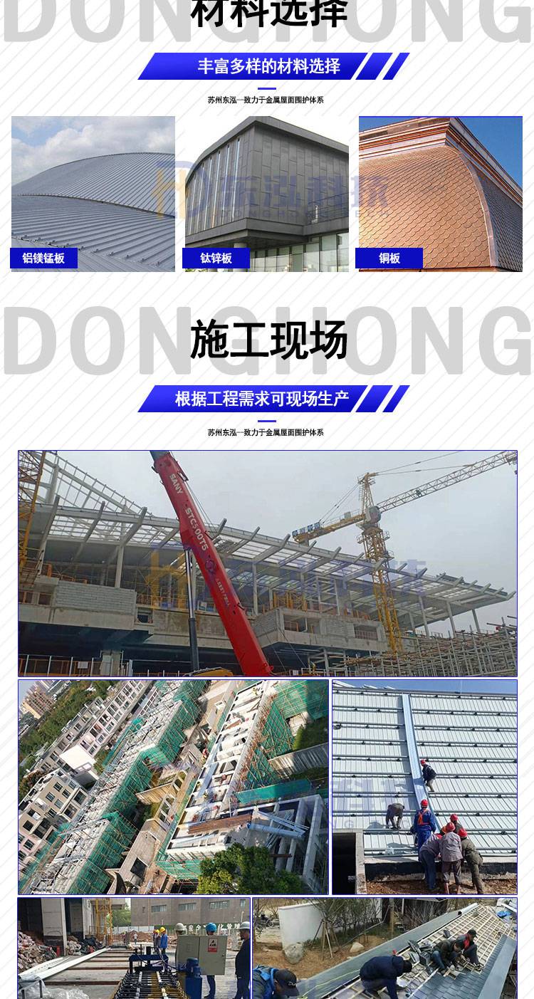 苏州东泓金属材料科技有限公司(Sunzhou Donghong Metal materials technology co. LTD)坐落于美丽的“德企之乡”苏州太仓,公司紧靠国家钢结构产业基地上海,与建筑之都南通一江之隔,交通发达,物流便捷。公司专业从事金属屋面、墙面材料的研发、制作、加工生产及销售安装,主营直立锁边铝镁锰屋面系统、金属幕墙系统、平锁扣屋面围护系统、仿古金属琉璃瓦系统、外墙保温系统以及金属暗扣式筒瓦屋面系统。公司从事多年压型钢板和直立锁边金属屋面墙面系统专业的高素质技术人员,拥有成熟丰富的现场施工项目管理经验,强大的技术设计团队,专业精细图纸深化,现已与国际、国内知名的高品质材料供应商建立了紧密的合作关系,可同时为全国建筑开发商、建筑师、工程公司、材料分销商提供全面的设计深化与咨询、材料供应、施工安装、售后维护等一条龙服务。 “东来紫气,泓扬四海”,公司一直以来严抓产品质量,重视产品研发和企业品牌建设,以“创***企业,树***”为宗旨,致力成为金属屋面围护系统专家,以***的品质、优良的服务为客户创造价值。