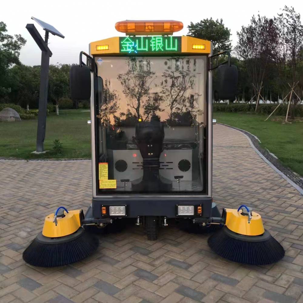 猎鹰型全封闭驾驶式扫地机是扫地、喷水、吸尘相结合的自动半封闭驾驶式清洁能源综合机器。带倒车影像 字幕LED 颜色字体自由设定 高压清洗机 雾炮 自由伸缩前大臂