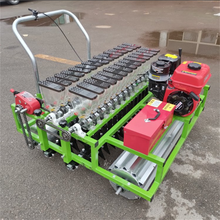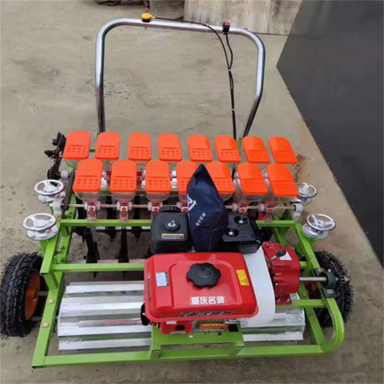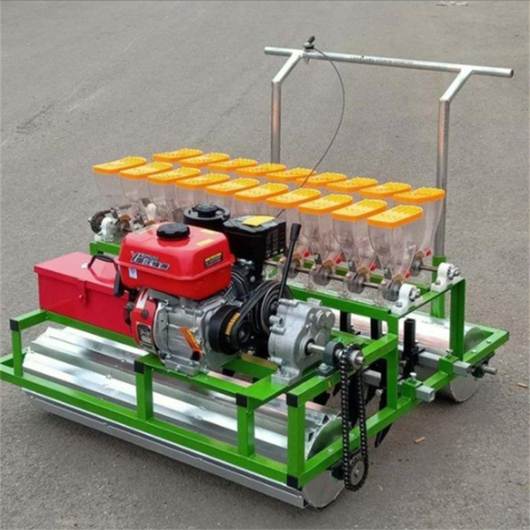2、方便快捷、省时省力。3、可调节播种:固定动力传送带的飞轮由多个卡槽组成,可根据不同的实际情况来调节播种的密度。可达到不用间苗、剃苗的理想效果。4、幼苗分布均匀、竞争力小、苗齐、苗壮而达到增产10%--20%。5、节约环保:人提供动力,可减少开支和污染。6、结构简单:工作情况一目了然,机身采用铝合金材质,精工制作,抛除了传统播种工艺中的毛刷及塑料轮,大大延长了使用寿命。7、适用:手推式小型蔬菜播种机 白菜娃娃菜精播机厂家8、播种准确均匀:下种口有板控制下料量,播种准确并且均匀!售后联系;13355126890