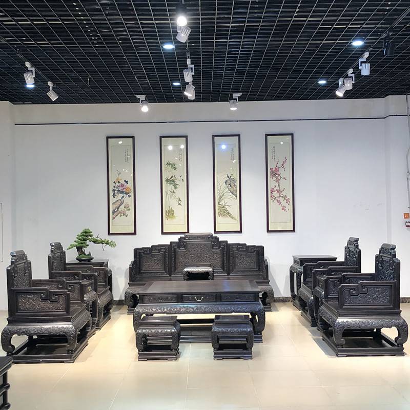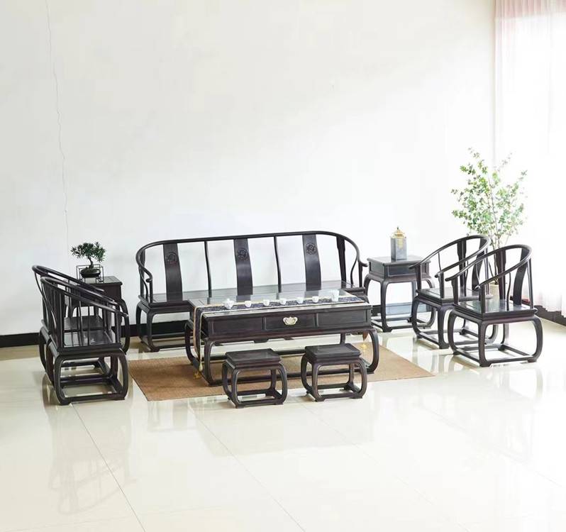 广东中式红木客厅成套家具 中山紫光檀明式沙发摆放图片