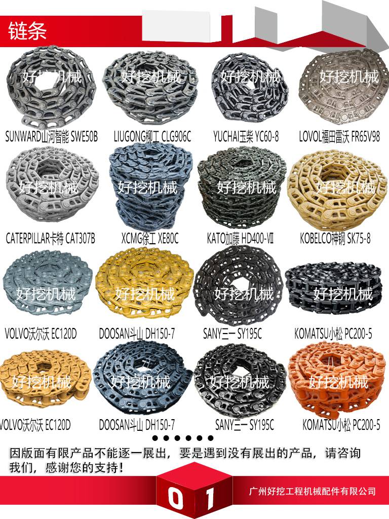 广州好挖工程机械配件有限公司(以下简称公司) 我公司位于:广东省广州市天河区珠村工程机械配件市场B区。 公司经营:道路/路基/隧道机械配件(以装载机配件,挖掘机配件为主;平地机配件,压路机配件为辅)。 主要机型:小虫挖掘机配件、卡特挖掘机配件、日立挖掘机配件、现代现代挖掘机配件、神钢挖掘机配件、大宇挖掘机配件、富豪挖掘机配件、三一挖掘机将配件、玉柴挖掘机配件、徐工挖掘机配件、柳工装载机配件、龙工装载机配件等。 主要产品:支重轮、托带轮、驱动轮、引导轮、链条、履带板、驾驶室玻璃、油封修理包、发电机、起动机、增压器、水泵、机油泵、水箱、打气泵、风扇叶、滤芯、工字架、连杆、摇摆架、斗轴、斗销、斗齿等易损配件 公司坚持***、以德为本、与顾客共赢的思想,在***拥有着良好***。 公司拥有常备库存,我们期待与您真诚合作!