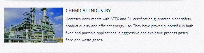 德国Hoentzsch(恒齐)公司流量传感器和流量计可用于气体和蒸汽的测量,可用于粉尘和气体防爆领域。粉尘浓度达到900g/m,测量介质温度达到500℃,耐压达到50bar,量程比可达到1:1000。