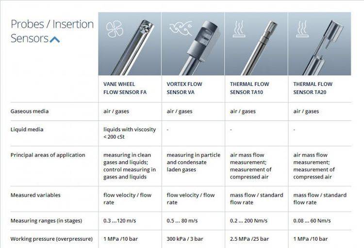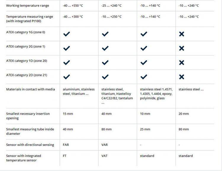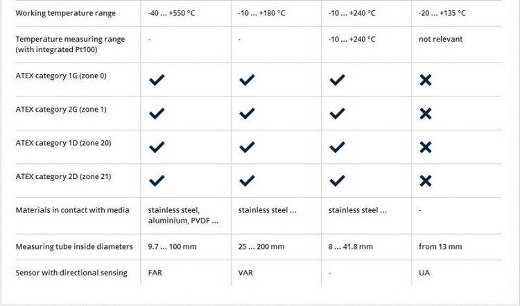 三、Hoentzsch流量计和流量传感器各类产品规格和优缺点对比: