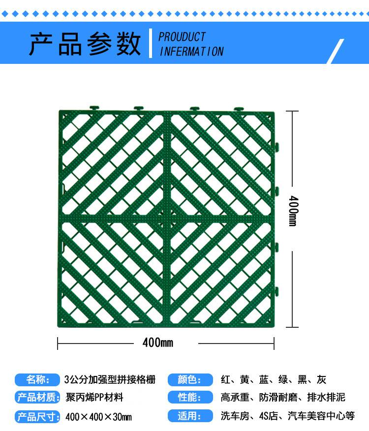 本页信息为贝肯信息科技(济宁)有限公司为您提供的"经久耐用PP洗车房场免挖槽地漏塑料隔板拼接地格栅防滑垫1235公分"产品信息,如您想了解更多关于"经久耐用PP洗车房场免挖槽地漏塑料隔板拼接地格栅防滑垫1235公分"价格、型号、厂家请联系厂家,或给厂家留言。 进入店铺