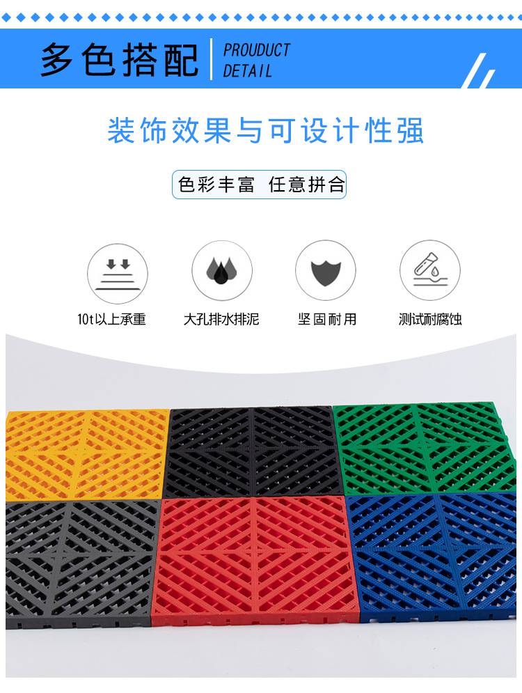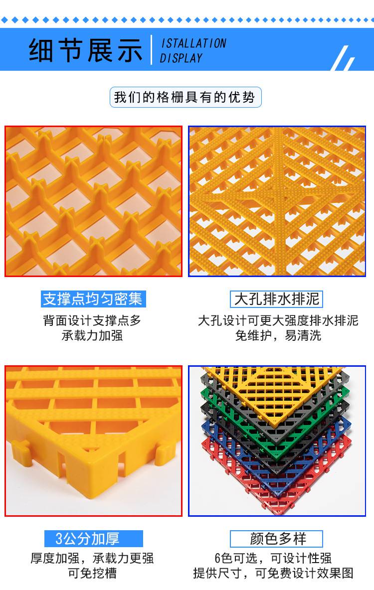 经久耐用PP洗车房场免挖槽地漏塑料隔板拼接地格栅防滑垫1235公分